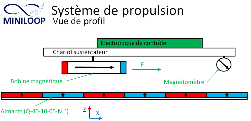 L'objectif technique de ce sous-projet et de parvenir à proposer un système de moteur pour miniloop. pour des raisons de coût et de simplicité de conception, il nous semble important que celui-ci soit embarqué directement sur le wagon miniloop. Au besoin, il est autorisé de modifier la disposition des rails et de réaliser une maquette spécifique.